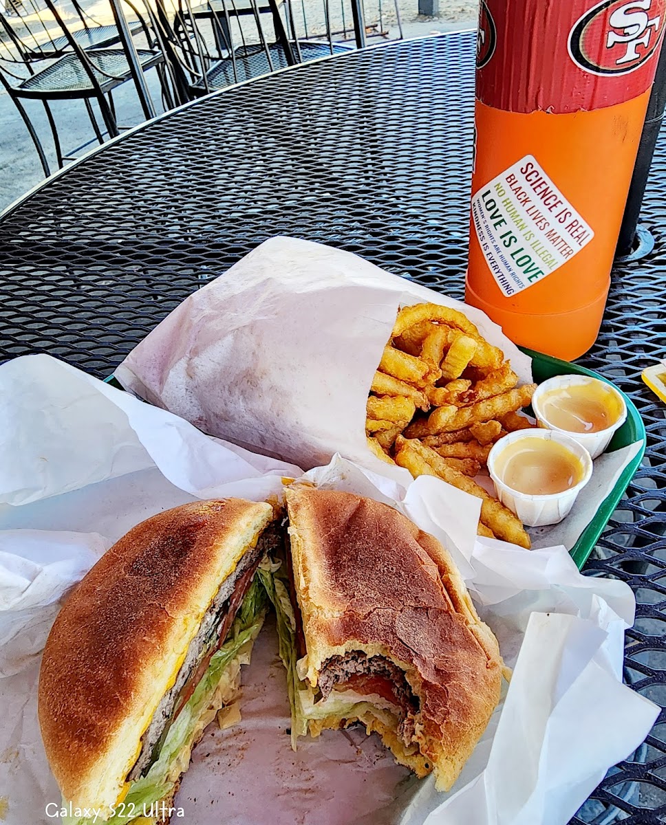 Bacon Cheese Burger and Fries