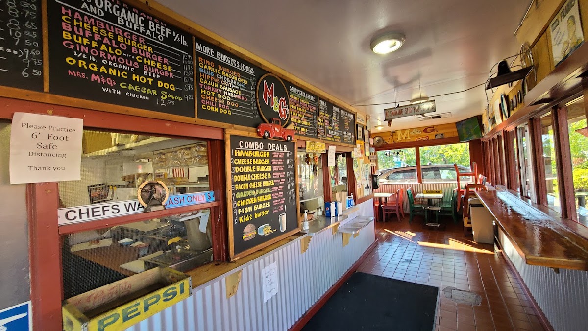 At M & G Burgers & Beverages, we pride ourselves on serving up delicious, old-school burgers in a warm, community-centric atmosphere. Nestled in Fairfax, CA, our establishment is a beloved local gem, known for its friendly service and retro decor that transports you back in time. Whether you're grabbing a classic cheeseburger and fries, indulging in our creamy soft serve, or enjoying a budget-friendly meal with your family, each visit promises a taste of nostalgia. We cater to various diets, offering vegan and vegetarian options, making it a perfect spot for everyone to relish hearty flavors and cherished moments.